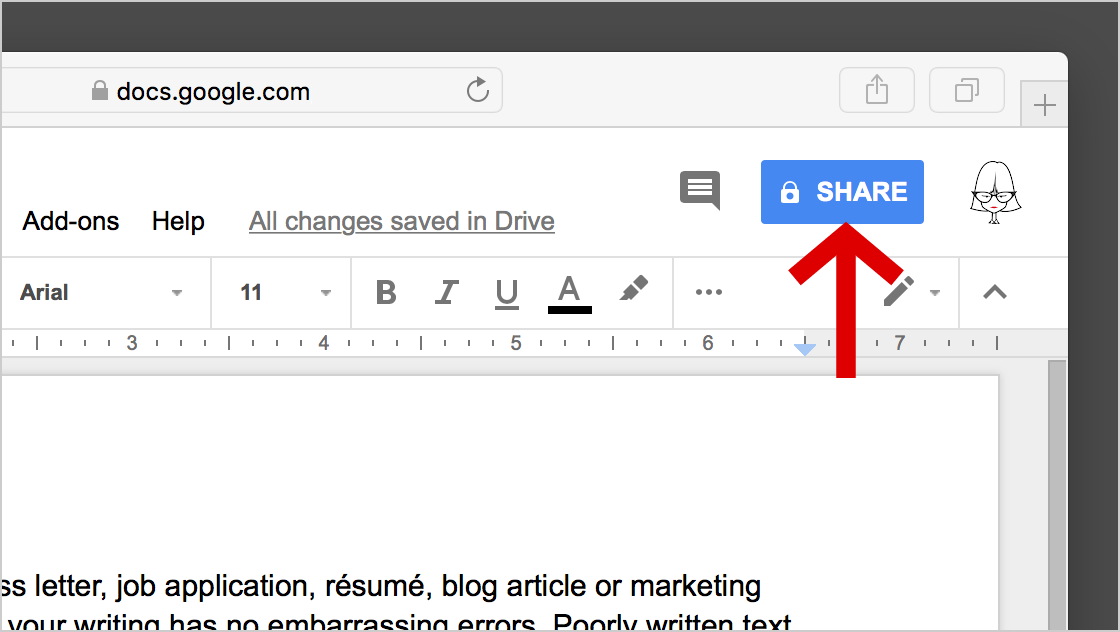 In the upper-right area of your Google Doc, click on the button labeled “Share”.