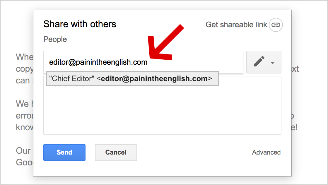A dialog box should pop up. In the field that says, “Enter names or email addresses...” paste (Ctrl+V or Command+V) our email address.
